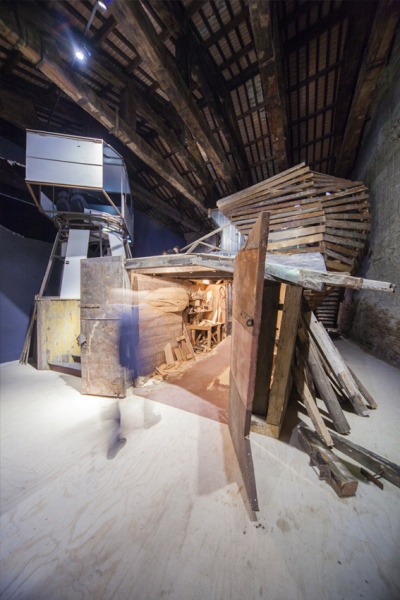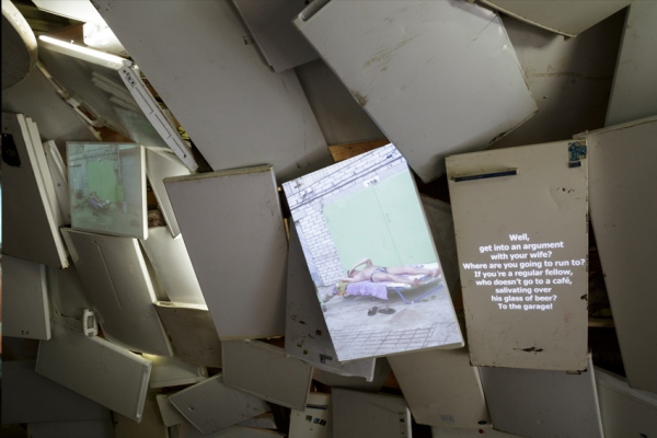 ARMPIT is a sculpted system of building constructions by Andris Eglītis and Katrīna Neiburga interwoven with video-stories about a peculiar local phenomenon, "garage elves", who tend to spend their leisure time tinkering with various mechanisms in workshops set up for this hobby.