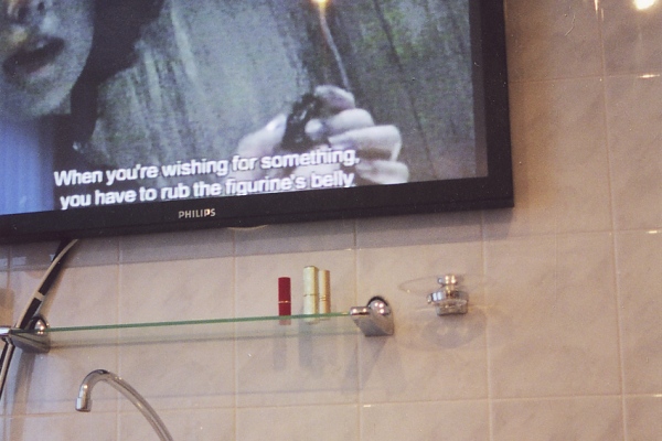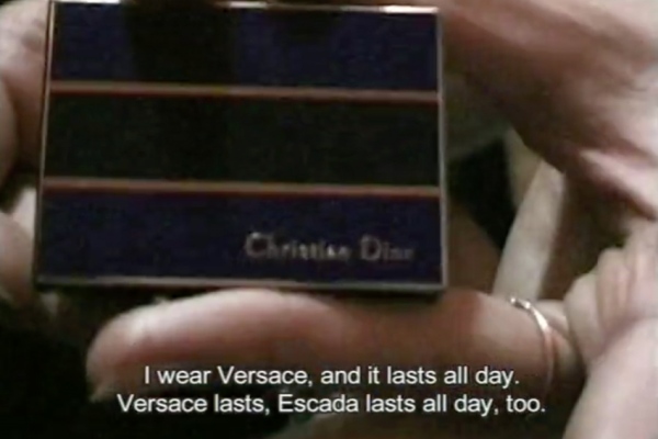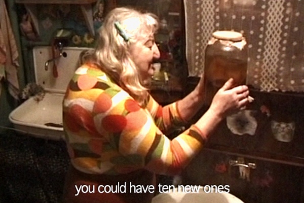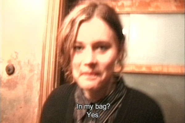 Another peculiarity of Katrīna's works ― they unravel lineally, like a journey. The narrative thread adheres itself to the back of an old man, the faces of her interlocutors or wanders off into the mirrors of ladies' rooms in nightclubs; the rest is the teamwork of the camera and reality. The question: ― What do girls have in their handbags? ― is nothing but a point of departure; it's just about as profound in itself as the psychological test in a woman's magazine treating the shape of a lipstick as a sign of its owner’s temperament. The video follows fragments of the beat of dance music, changes of lighting, increases in the pace of the answers. It switches from the general contents of the handbags to distinctive objects to all sorts of lucky charms, condoms and cosmetic brands to advice on carrying around a one-dollar note. Just like Georges Perec’s novels, the empire of ready-made objects and interior design sucks us into a vision of personal history, commentary, relationships and the times. The destination is variable, the video is roaming the space of experience.
