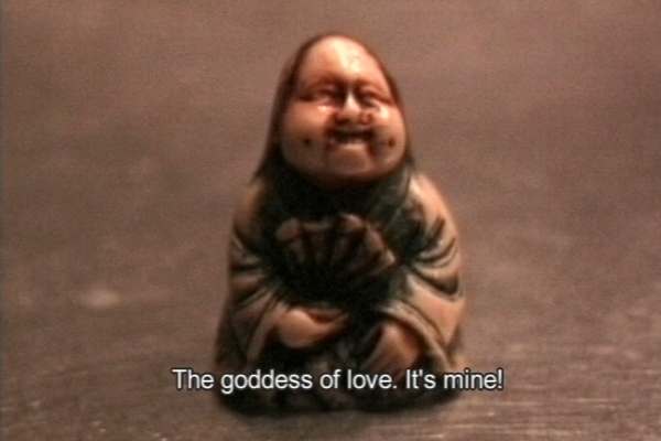 The Magic Thingscould become a textbook example of the way European critical thought demonstrates in a simple little production society's self-sufficient culmination in absurdity, namely, in consumption for consumption's sake, with all the rituals that stem from it. It's just like Coca-Cola ― no-one in the 19thcentury would have ever thought of demanding a soft drink it like that for the simple reason that it hadn't been invented yet. Nor had the Handy Homeconsumer goods sales catalogue, which Katrīna has made use in her witty and painstakingly produced video. Objects that come to life in this "theatre" are actually being manufactured, sold and delivered to a consumer who chooses them from the said catalogue.