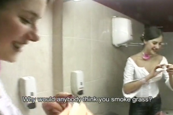 What Girls Have in their Handbagsconsists of two parts1: the fieldwork carried out in Riga nightclubs — or the process — and the summary: the film. The empirical experience takes place live. In spite of the camera taking special care to keep away from mirrors reflecting the artist during the film, the viewer still witnesses a very active conversational process ― an interview, some off-camera encouragement. Performer participation and process is characteristic of both Katrīna Neiburga's audiovisual performances and her work in other media. Self-exhibiting and performativeness are both recognised as strategies in gender theory: "...gender is an "act", as it were, that is open to splittings, self-parody, self-criticism, and those hyperbolic exhibitions of "the natural" that, in their very exaggeration, reveal its fundamentally phantasmic status".2The powerful and, once again, personal feminist rhetoric of Katrīna's works is particularly pronounced in the "handbags", a project on girls, filmed while polling ladies in nightclub loos and first exhibited in The Sixth Element, an interdisciplinary project by "lady artists" carried out with Katrīna's help.3
