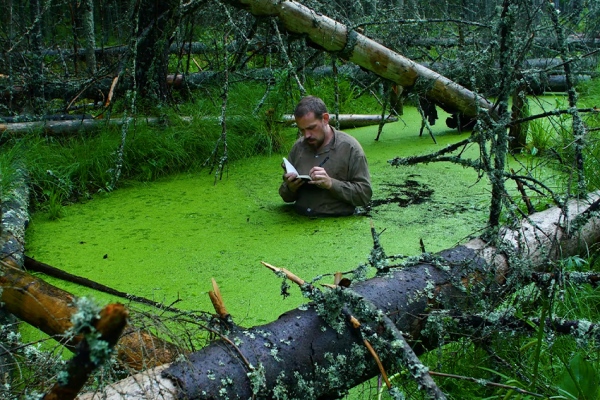 Far beyond the Arctic Circle, there lives a remote community of hunters. They hunters live far apart from one another, meet rarely and talk even less, light solitary fires, smoke their pipes by themselves, tattoo themselves, check on their animal traps, bake raisin bread, dream of brief, carnal encounters, lace their coffee with vodka, shovel snow drifts, and skin the foxes they’ve caught. Meanwhile, underneath the frozen waves, the sea is constantly flowing onward – as soft and smooth as glycerine.On occasion, followed by the starlight and northern lights, the hunters climb a mountain – alone and insilence –, sit down, and gaze into the endless darkness to recall the sun and everything it illuminates. Then they drop their pants and run southeast.