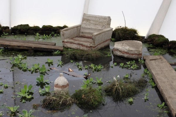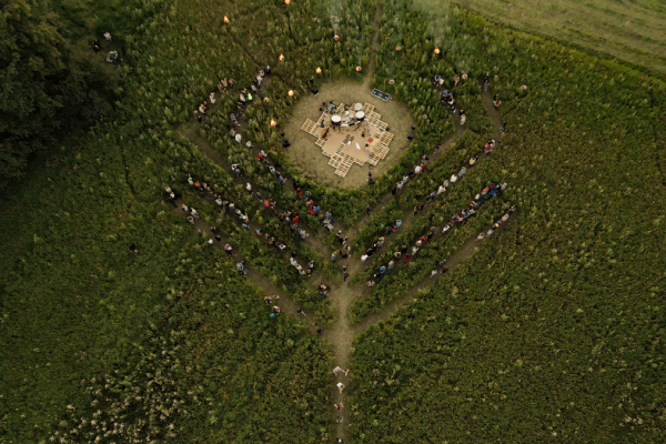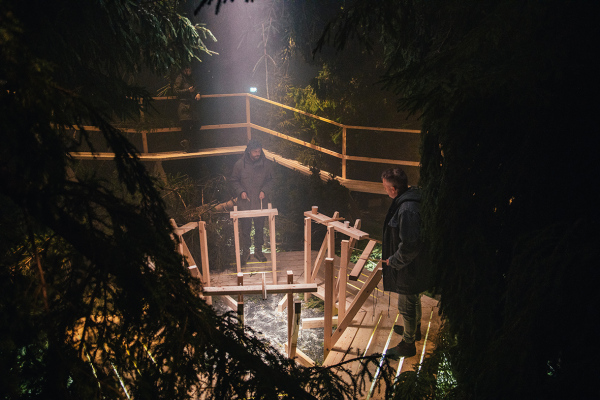 Will-o’-the-Wisp is a multimedia installation in dialogue with a wealth of new age spiritual practices and world religions. Drawing on a global architectural vernacular that includes do-it-yourself cultures, their structure will incorporate local building practices and construction items as well as organic material found from the territory where it is directly built. Will-o’-the-Wisp not only reminds us of what we seek when we cannot name a presence, or attempt to catch the glimpses of light that symbolise absolute truth, but also what happens when our senses disappear and our barriers to ‘experience’ as a type of unmediated and undeniable thing allow us to go deeper into ourselves.