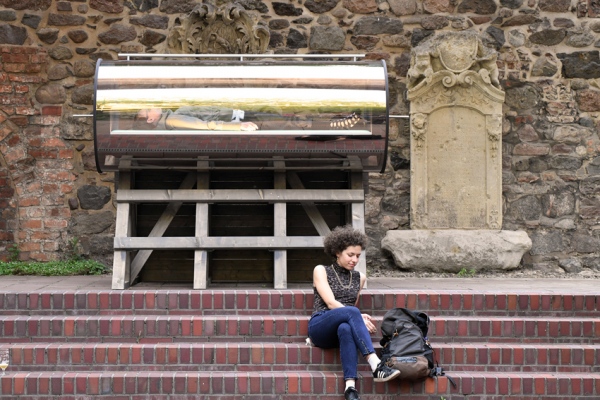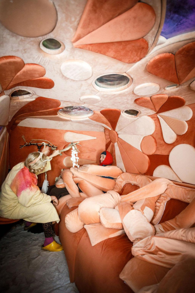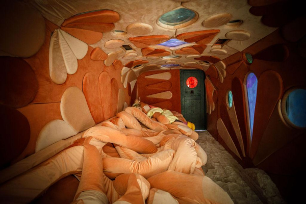 As an audience member, you are invited into a converted caravan. You are met by a soft velvet universe - a cathedral, an enchanting cave, a place where you can take a break from the banalities of everyday life and where, through a unique fusion of music, video, performance and installation, you can surrender to the twisted reality and absurd landscapes of dreams.