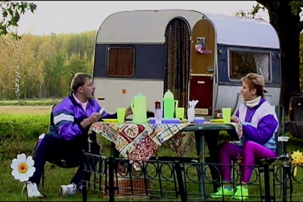 Nothing special about it, it would seem ― it's two actors playing a married couple out of town. But the family's ostensible time-out while picnicking is nevertheless nothing but a relentless fiddling with absolutely useless contraptions. In the dead of night when the owners are asleep the things carry on with their affairs like the protagonists of a modern fairy-tale, the promise of ladolce vita. They are not witches, Thumbelina and Little Red Riding Hoods but mass-produced consumer goods which to some people may possess a certain poesy. Katrīna Neiburga's magic things are not evil, neither are the people who use them. It's a slightly sad and funny but still endearingly ironic take on our times, the judgement of which should not be based on the domain of the apparent and the material.