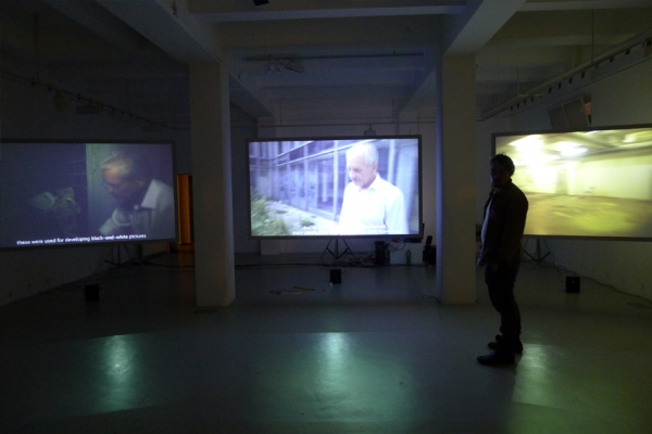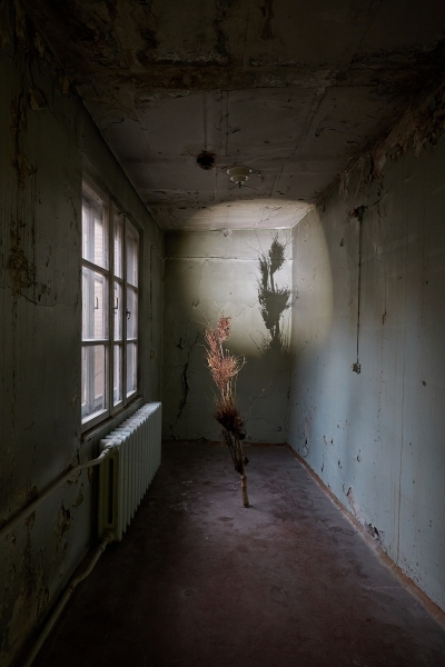 Her children’s playground was the café filled with cigarette smoke, the huge elevators, the seemingly infinite stairs, and the labyrinth of rooms. The artist has involved numerous former Press House employees in the project, from the concierge to the director and managing editors of its magazines and newspapers. Their stories restore the feel and look of bygone days. The work weaves a poetic documentary narrative of the memories concealed in the minds of people and the abandoned building. A slowly moving camera explores spaces abandoned long ago while it encounters people who once worked there.