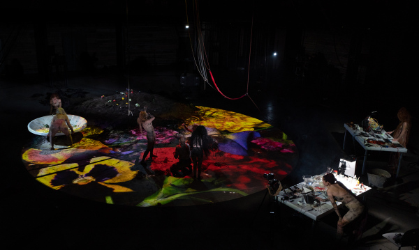 Lyricist/dancer Anika Barkan (DK) , composer/live musician Mika Forsling (S) , scenographer/video/visual artist Katrina Neuburga (LV) , dancer Ghazal Ramzani (IRN) . Audience host/performer Laura Hagen Aagaard. Design/construction Livest SIA (LV)