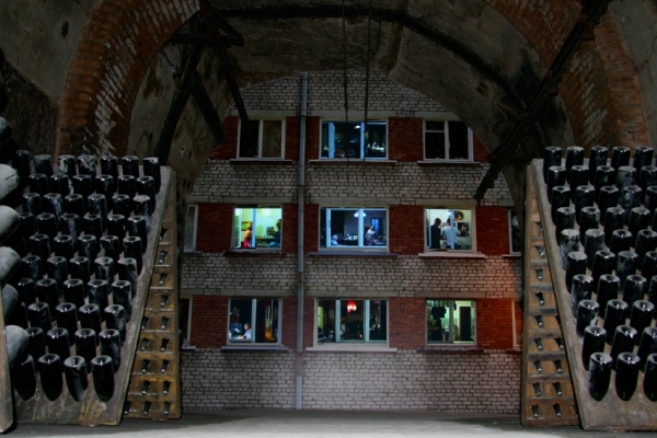It was inspired by a sample of vernacular architecture with local character – the Soviet era co-ops of private garages whose owners have adapted them for the hybrid use as workshops-cum-dachas. Today some of the garages have been turned into living spaces. Others house workshops. In some, cars are still kept. It is a closed male commune, a monastic brotherhood that includes retired blue-collar workers of a planned economy and engineers from factories closed in the course of neo-liberal reform. With the enthusiasm of alchemists, they are continuing to occupy themselves with inventing, constructing mechanical devices or re-soldering microcircuits pulled out of second-hand gadgets.