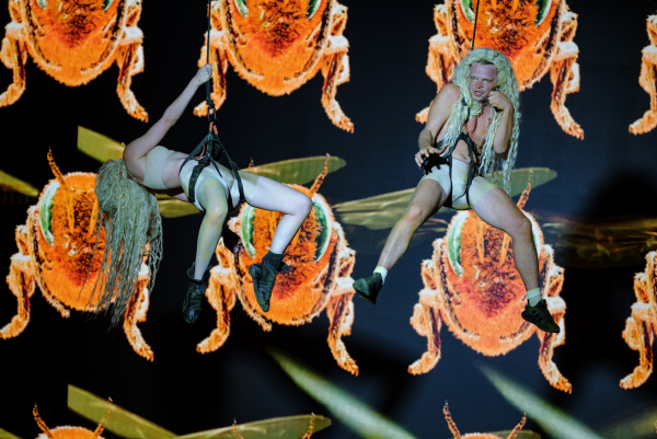 In order to preserve the fragile ecosystem of Lake Ummis, the swimming shown in the video footage of the performance did not take place in this lake. The production has made an effort to use reusable set design elements; most of the costumes and set design are reusable and will be returned to the owners or to nature after the performance.